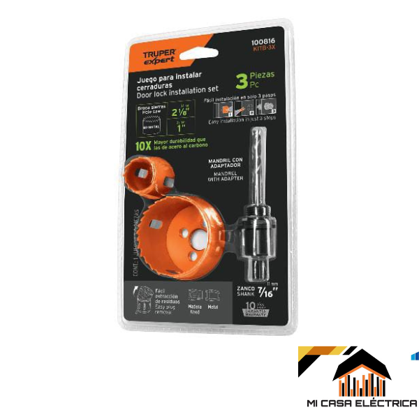 Juego de 3 piezas para instalar cerradura