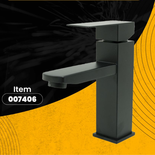 Llave lavamanos cuadrada baja negra / cromada